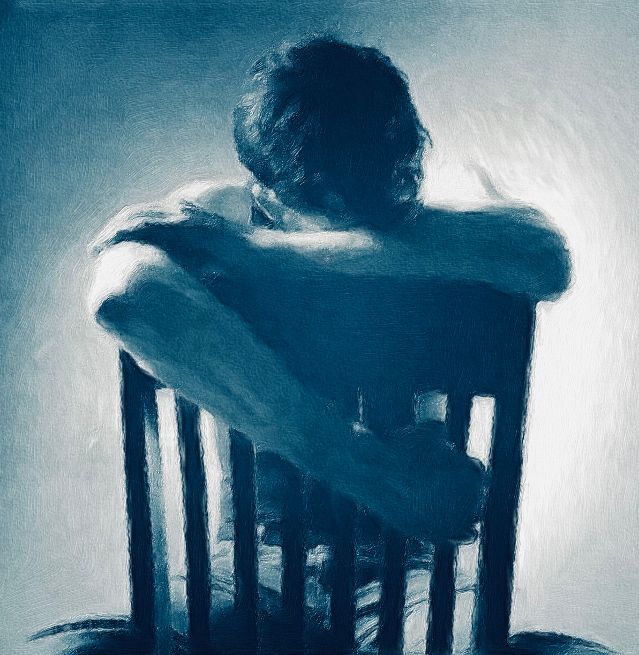 He lay there in the half-light, his body half hidden in shadow.