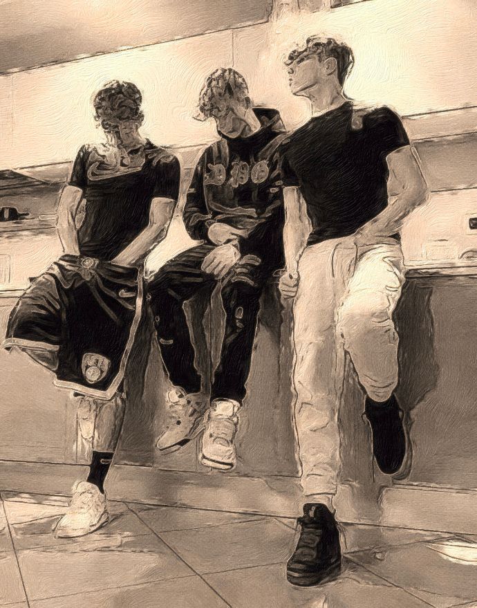 They were by the steps outside our block. Andy leaned against the wall in jeans and a white Levi T-shirt. Jack sat on the bottom step in black shorts and a Sheffield Wednesday top, staring at something on his knee.