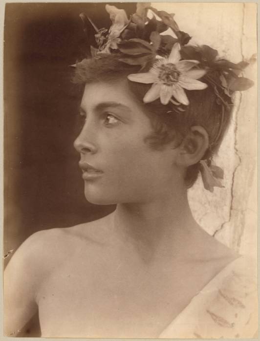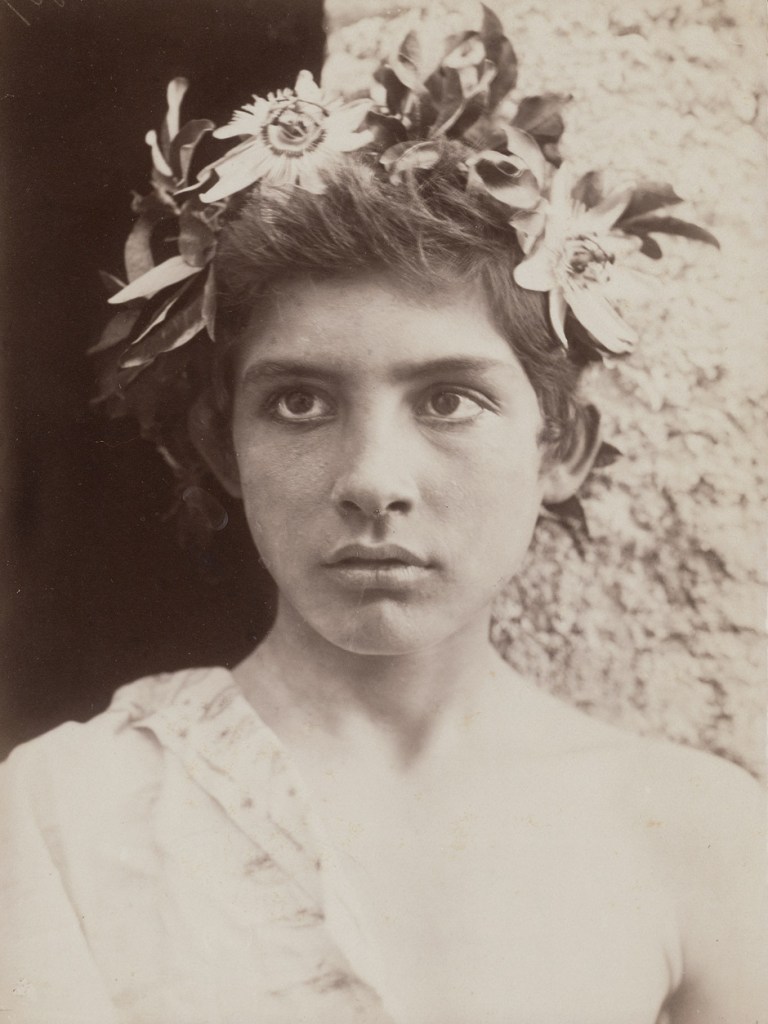 Giacomo crowned with passion-flowers. c.1890-1900. Wilhelm von Gloeden