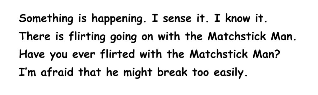 Charlie told me a story. He said that he woke up this morning and found that I was missing. When I didn’t reappear after a couple of hours, Charlie went to the neighbour and knocked on her door. “Have you seen Miles?” “No, I haven’t,” she replied. Charlie went to the other neighbour and knocked on the door. “Have you seen Miles?” “No, I’ve not seen him,” he answered. Charlie left the apartment and walked to the block on the other side of the road. He climbed three flights of stairs and knocked on Mrs Hayward’s door. “Have you seen Miles?” But she slammed the door in his face.