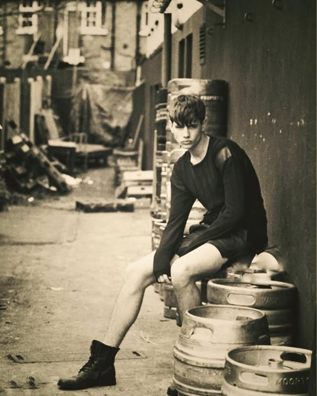 He sits like a ghost of last night, knees raw, boots scuffed, a slouch that says he’s seen too much for someone too young to carry it. The alley’s a graveyard of pallets and metal, the air thick with the stale breath of kegs that haven’t been touched since the last fight or fuck. The wall at his back don’t care who he is, and neither does the city — just another boy in borrowed clothes, dragging the hem of his story through concrete and piss. His eyes don’t beg. They dare. As if to say: I’m not lost — I’m choosing to stay gone. Everything here’s worn out —the barrels, the bricks, the boy. But there’s poetry in the ruin, and he knows it. He’s not posing. He’s waiting. For the light to change, for someone to look twice, or maybe just for the silence to settle in enough to sleep.